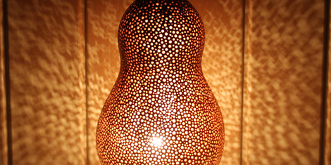 店内にはひょうたんランプやひょうたんスピーカーが吊り下がり、